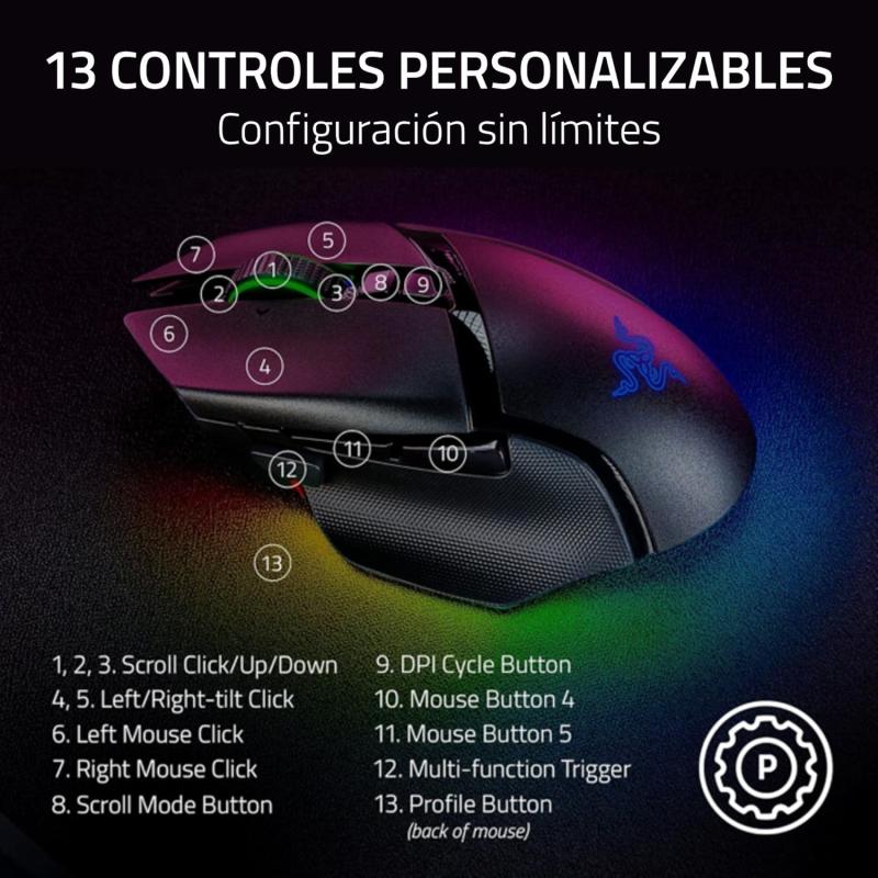 Raton Razer Basilisk V3 Pro 35K Precisión óptica de 35000 DPI 11 botones programables diseño ergonómico