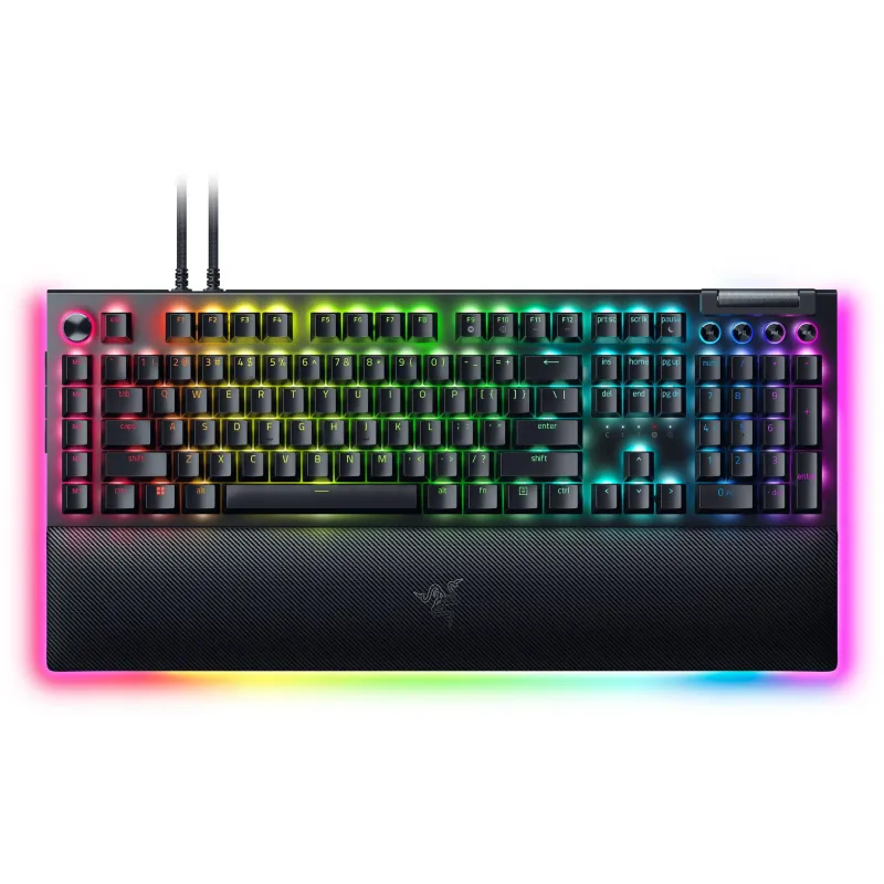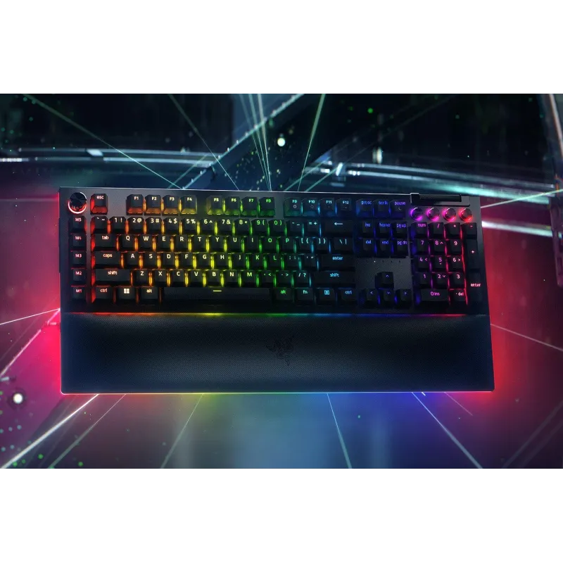 Teclado Razer BlackWidow V4 Pro con interruptor mecánico Razer Yellow frecuencia de sondeo 8000 Hz retroiluminación RGB y teclas programables.