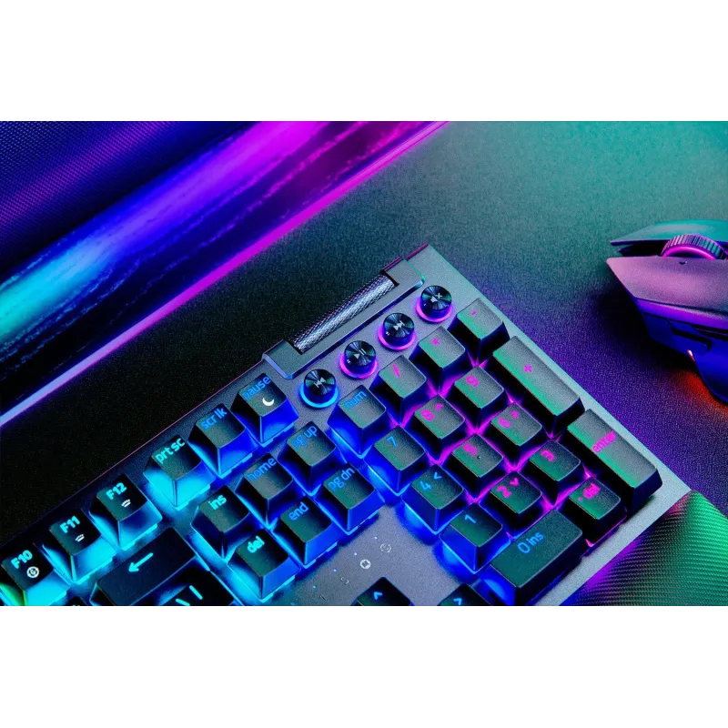 DIAL DE COMANDO RAZER Y 8 TECLAS MACRO DEDICADAS: Máximos comandos al alcance de tus dedos. Asume un mayor control sobre tu estación de batalla asignando una función personalizada al dial programable del teclado. Juega con mayor comando usando un conjunto de teclas macro para atajos esenciales.