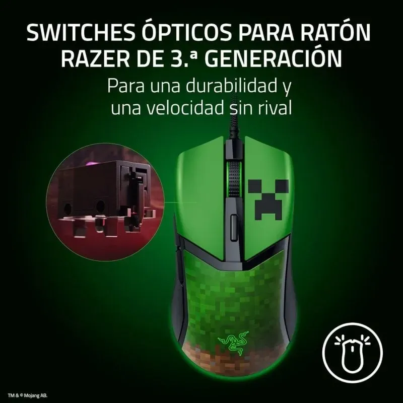 Ratón Razer Cobra Minecraft Edition con resolución de movimiento 8500 DPI velocidad de seguimiento 300 ips y 6 botones programables para alto rendimiento