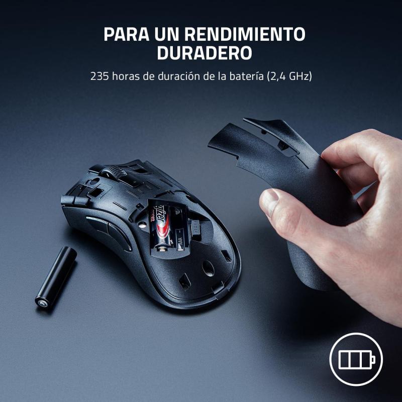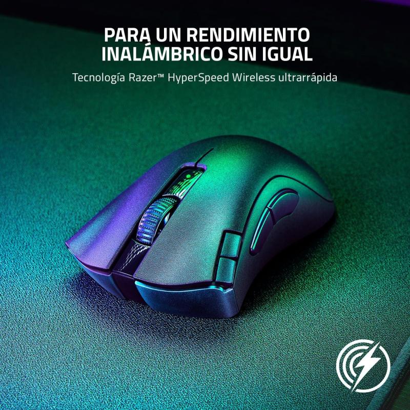 ERGONOMÍA SIN LÍMITES: Más de 15 millones de DeathAdders vendidos. Más de una década de premios a su nombre. La ergonomía icónica ahora viene con control ilimitado, gracias a la conectividad inalámbrica dual a través de Razer™ HyperSpeed Wireless ultrarrápido o Bluetooth, y 7 botones programables, incluidos 2 nuevos botones de acceso rápido en el borde.