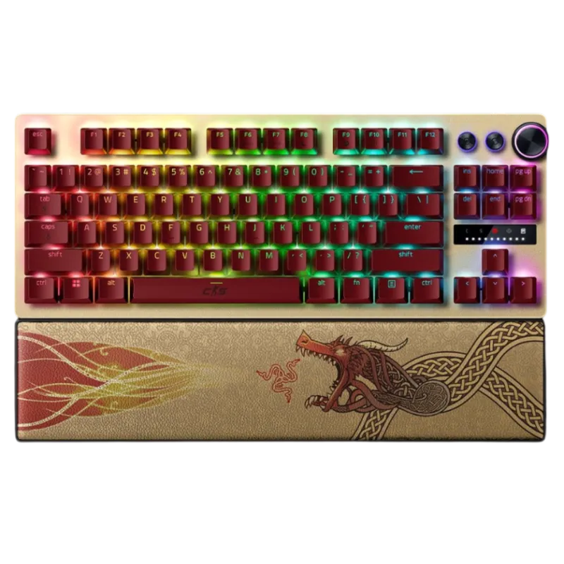 Incluye un diseño temático oficial, switches ópticos analógicos y Rapid Trigger, con sinergias centradas en ajuste fino del punto de actuación y estabilidad estructural.
