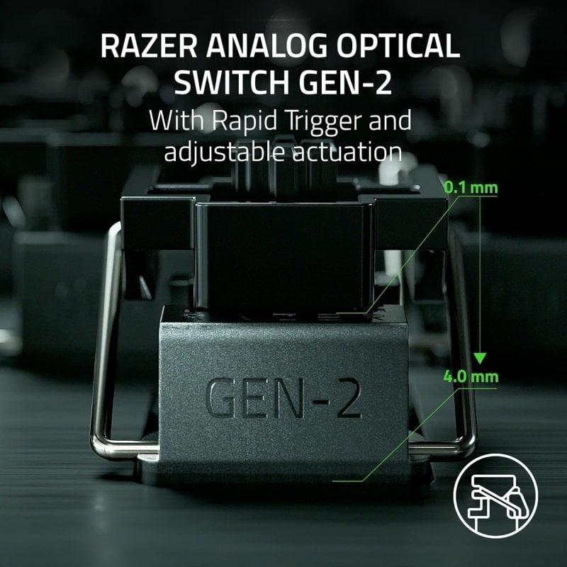 INTERRUPTORES ÓPTICOS ANALÓGICOS RAZER™ GEN 2: Maximiza la precisión y la respuesta con un teclado TKL que presenta nuestros interruptores más avanzados, incluyendo Disparo Rápido para entradas repetidas ultrarrápidas, un rango de activación ajustable de 0.1 a 4.0 mm, y una vida útil de 100 millones de pulsaciones.