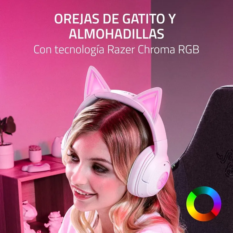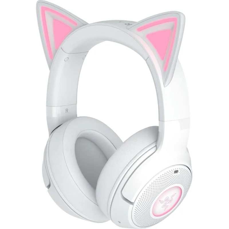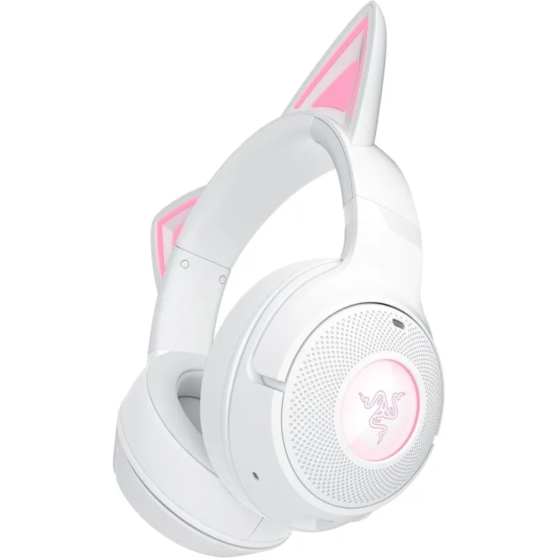 Auriculares Razer Kraken Kitty V2 BT sonido envolvente diseño blanco con orejas iluminadas Bluetooth 5.2 y 40 h de batería