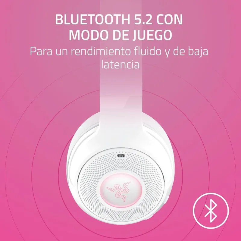 DISEÑO INALÁMBRICO CON BLUETOOTH 5.2 PARA UNA CONEXIÓN ESTABLE: Los Auriculares Razer Kraken Kitty V2 BT incorporan la avanzada versión de Bluetooth 5.2, lo que permite una conexión inalámbrica más estable, rápida y eficiente. Esta tecnología reduce la latencia y mejora la sincronización entre el audio y la imagen, ideal para juegos competitivos o sesiones multimedia. Al eliminar los cables, ofrecen mayor libertad de movimiento sin comprometer la calidad de sonido. Esta versión de Bluetooth 5.2 también mejora la eficiencia energética, prolongando la duración de la batería integrada hasta 40 horas, lo que convierte a estos auriculares en una opción excelente para quienes buscan autonomía y rendimiento en un mismo dispositivo. Con los Auriculares Razer Kraken Kitty V2 BT, disfrutarás de una experiencia sonora sin interrupciones y con la máxima comodidad.