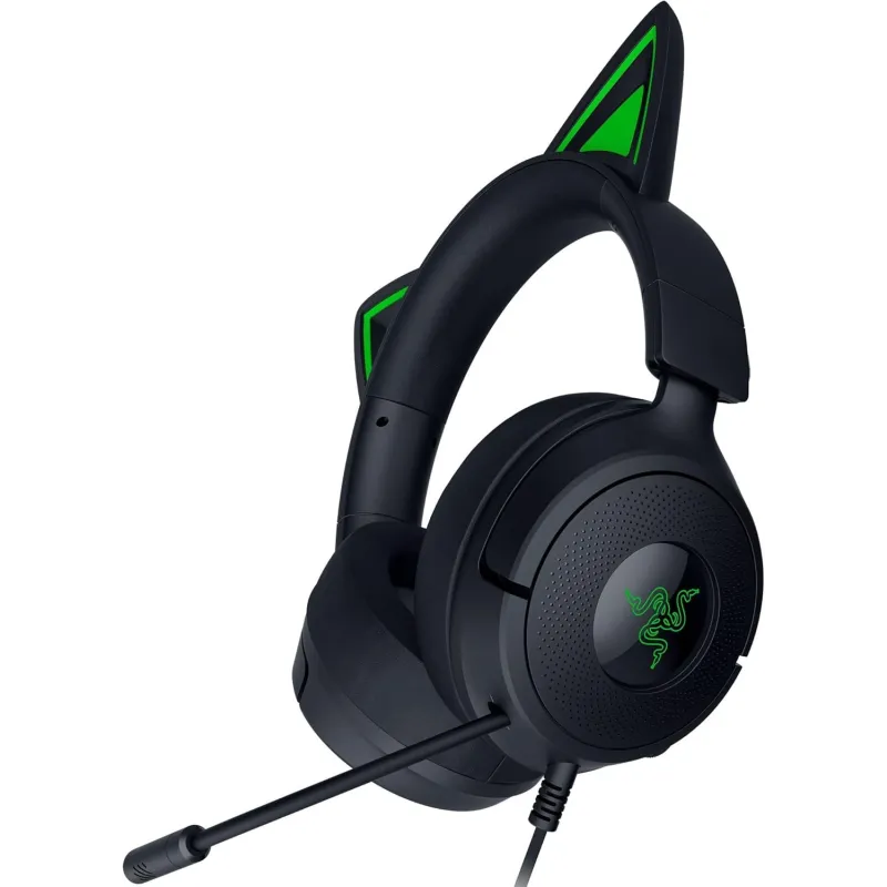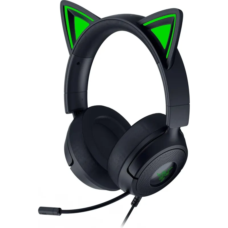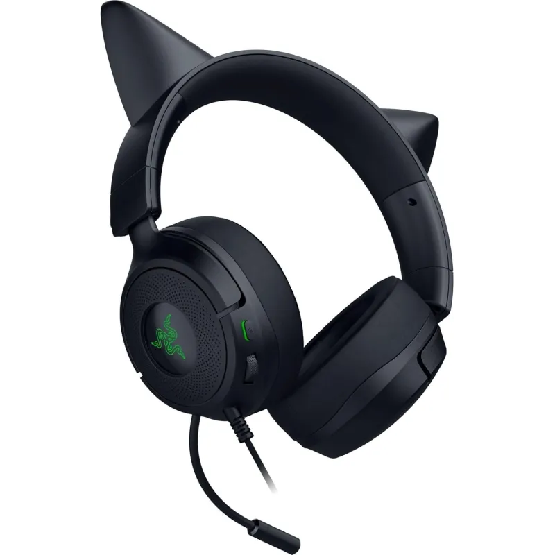 Auriculares gaming RAZER KRAKEN KITTY V3 X QUARTZ Negros Orejas de gatito, jack 3,5 mm, TriForce 40 mm y micrófono HyperClear. 270 g. PC/PlayStation/Switch.