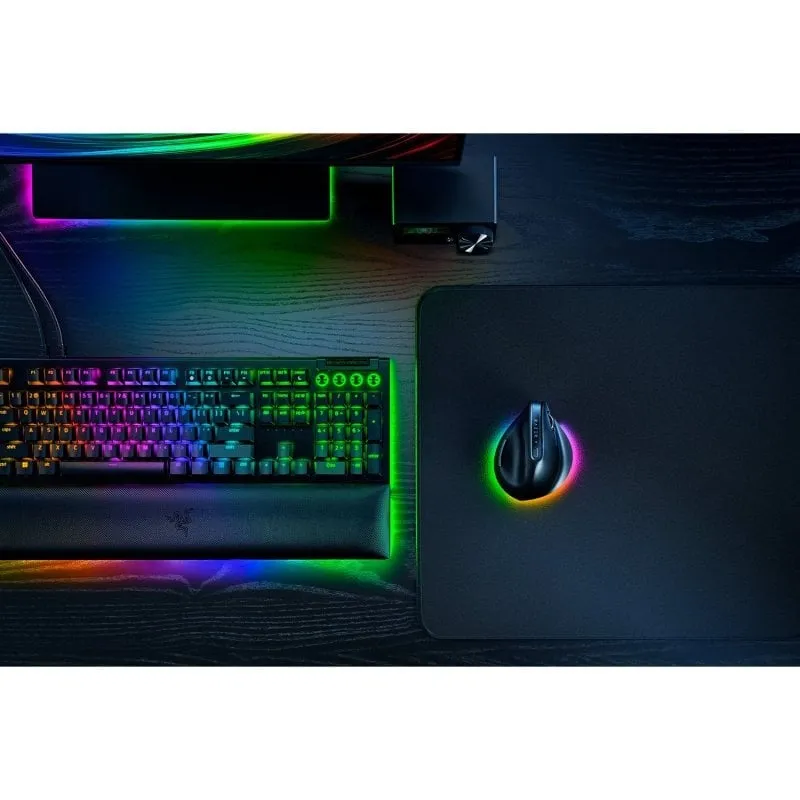 Gracias a la tecnología de conectividad inalámbrico y alámbrico, el Ratón Razer Pro Click V2 Negro se adapta a cualquier entorno de trabajo o juego. Puedes conectarlo mediante RF Wireless, Bluetooth o USB tipo C, lo que facilita su compatibilidad multidispositivo. Su batería recargable ofrece hasta seis meses de autonomía, y su carga a través de puerto USB tipo C es rápida y eficiente. El Ratón Razer incluye un cable USB tipo A a tipo C, receptor y manual de usuario, todo lo necesario para comenzar a utilizarlo desde el primer momento. Su diseño monocromo en color negro con iluminación personalizable aporta un toque moderno sin sacrificar funcionalidad. Con un peso de 150 gramos y dimensiones equilibradas, proporciona estabilidad sin ser pesado. La combinación de resolución de movimiento 30000 DPI y controles personalizables lo convierten en una herramienta imprescindible para usuarios exigentes que valoran rendimiento y precisión.