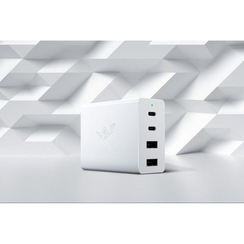Cargador de Móvil Razer RC21-01700200-R3M1 potencia de 130W 4 puertos USB (2 Tipo C) diseño compacto Blanco