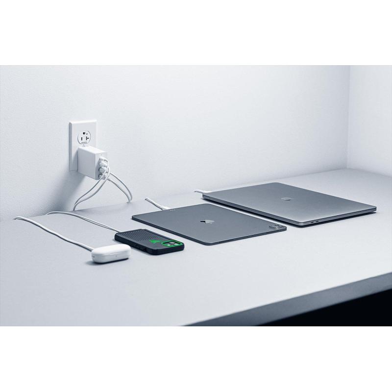 El cargador cuenta con dos puertos USB 3.2 Gen 1 Tipo A y dos puertos USB Tipo C, lo que te permite cargar múltiples dispositivos simultáneamente sin comprometer la velocidad o la estabilidad de la carga. Además, incorpora tres enchufes, lo que lo convierte en una solución integral para tus necesidades de energía. Su diseño para uso interior garantiza un rendimiento óptimo y seguro, mientras que su tamaño compacto con dimensiones de 32 mm de ancho, 62 mm de profundidad y 76 mm de altura, junto con un peso ligero de 35 g, lo hace extremadamente portátil y fácil de transportar.