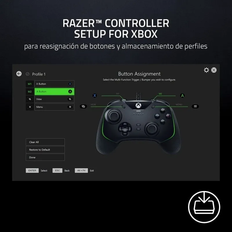 CONFIGURACIÓN AVANZADA DE LA APLICACIÓN: La personalización avanzada se ha vuelto mucho más fácil con el Razer™ Controller Setup para Xbox. Diseñada para Xbox Series X|S, Xbox One y PC (Windows® 10 y superior), esta aplicación de Xbox te permite reasignar botones y gatillos multifunción o ajustar los niveles de sensibilidad para completar tu experiencia de juego.