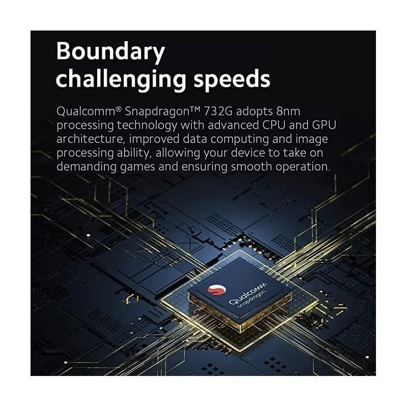 VELOCIDADES QUE DESAFÍAN LOS LÍMITES: Qualcomm® Snapdragon™ 732G adopta la tecnología de procesamiento de 8 nm con una arquitectura avanzada de CPU y GPU, computación de datos mejorada y capacidad de procesamiento de imágenes, lo que permite que el dispositivo se adapte a los juegos más exigentes y garantiza un funcionamiento sin problemas.