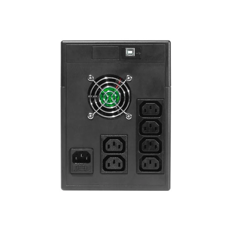 Entre sus funciones de protección de poder se incluyen la protección contra sobretensiones y cortocircuitos. Alimentada por corriente alterna, la UPS incluye un cable de alimentación desmontable para mayor flexibilidad. Además, dispone de un puerto USB y un puerto RS-232, facilitando la conectividad con diversos dispositivos.
