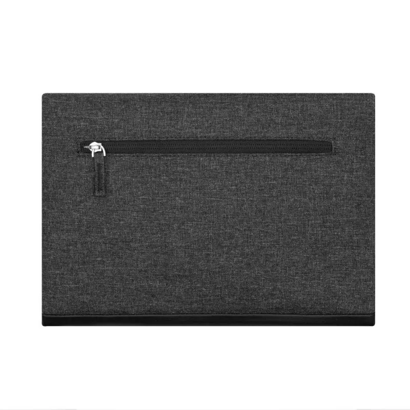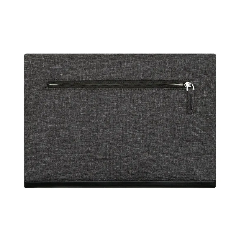 - Fabricado con piel sintética de alta calidad y una moderna tela melange hecha de poliéster duradero para proteger una computadora portátil de golpes y rasguños ocasionales, así como del polvo y la humedad.