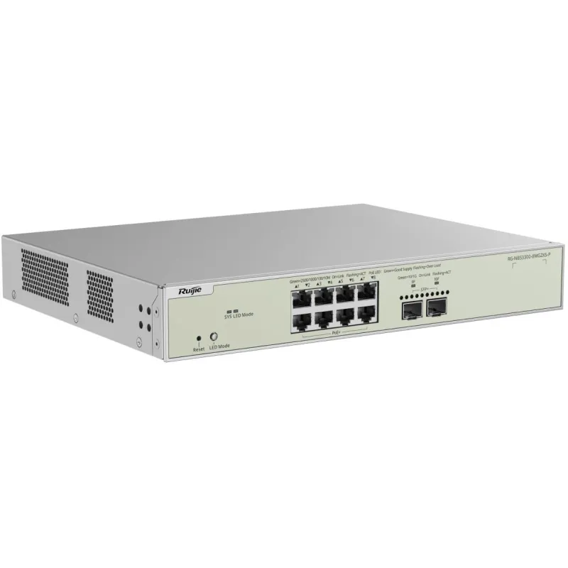 Switch Ruijie Networks RG-NBS3300-8MG2XS-P con capacidad de conmutación 80 Gbit/s, puertos SFP+ 10G y 8 puertos RJ-45 gestionados L2