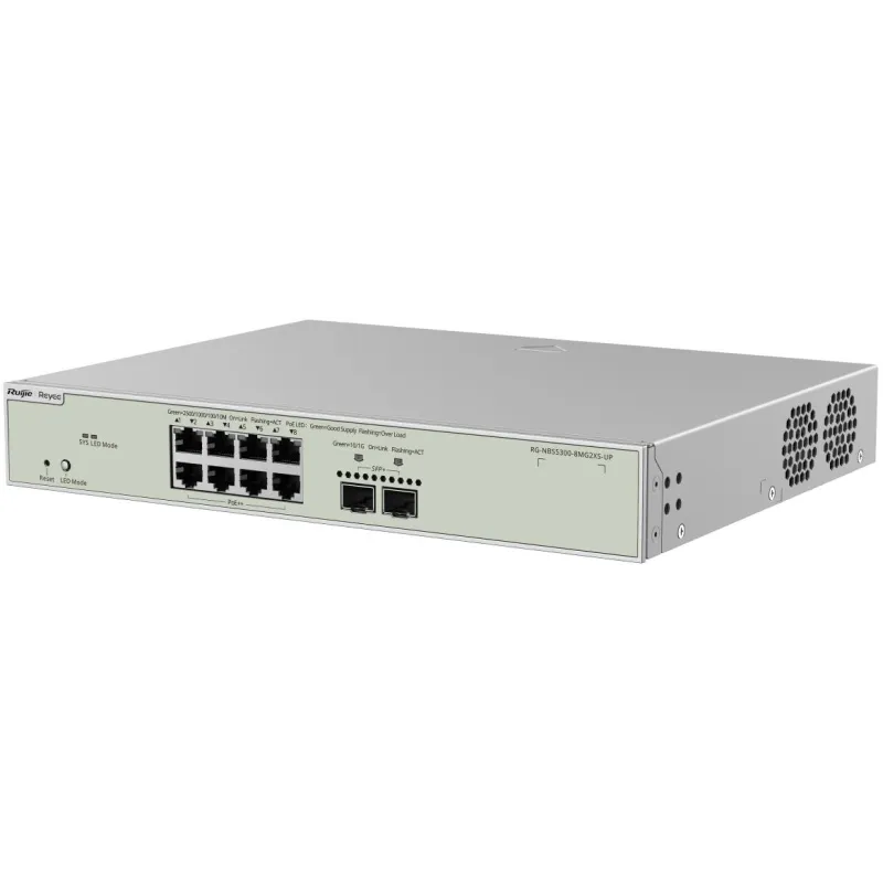 Ruijie Networks RG-NBS5300-8MG2XS-UP Switch L3 Gestionable de 10 puertos multi-Gigabit con 8 puertos PoE++ y 2 puertos SFP +