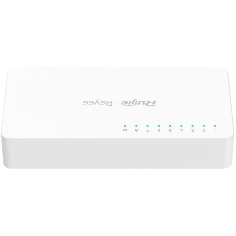 Switch Ruijie RG-ES08F no administrado con 8 puertos Fast Ethernet diseño compacto bajo consumo y garantía de 3 años.
