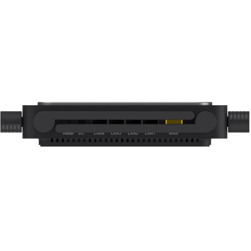 Dispone de 4 puertos Ethernet LAN (RJ-45) de tipo Gigabit, ofreciendo velocidades de hasta 1000 Mbit/s para conexiones cableadas de alto rendimiento. La administración se facilita mediante interfaz web y opciones avanzadas como QoS (Calidad de Servicio) y soporte para Wi-Fi Multimedia (WMM/WME), mejorando la experiencia en aplicaciones como streaming y videoconferencias. También incluye función de restauración y soporte para DNS dinámico.