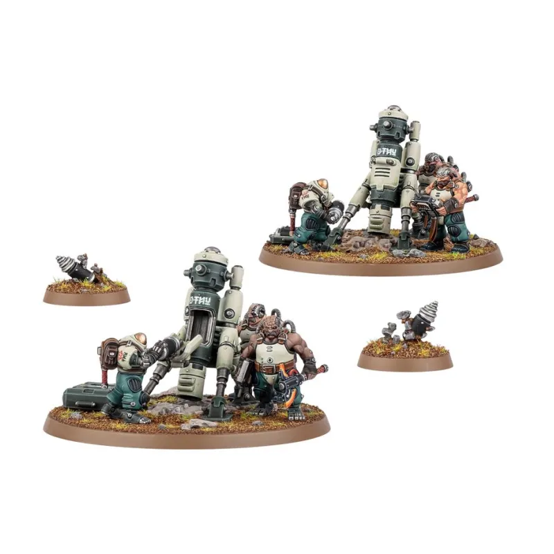 Este conjunto incluye cuatro miniaturas de plástico altamente detalladas, diseñadas para representar a la perfección la estética y el poderío de las Ligas de los Votann. Cada figura ha sido esculpida con precisión para reflejar la tecnología y el carácter único de este ejército en el universo de Warhammer 40.000. Su montaje es sencillo, pero ofrece una profundidad visual que encantará tanto a coleccionistas como a jugadores. Estas miniaturas no solo destacan por su funcionalidad en el juego, sino también por su valor como piezas de exhibición.
