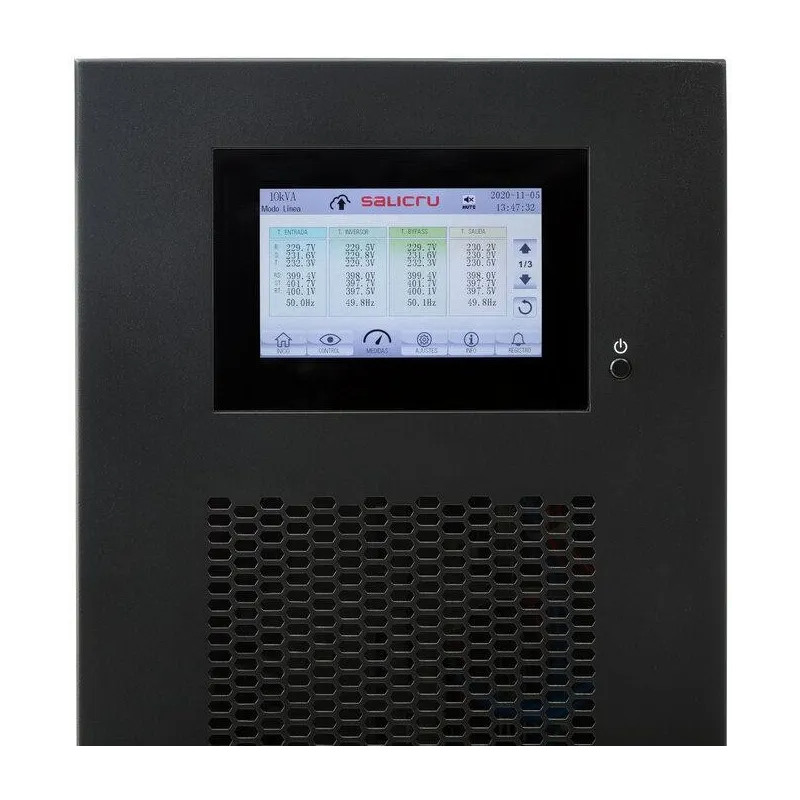 Maximiza la eficiencia energética con un 96% en modo online y un impresionante 98% en modo ECO. Además, cuenta con un factor de potencia de entrada de 0,99 y un factor de potencia de salida de 1, asegurando una entrega de energía óptima. El factor de cima de 3:1 y un nivel de ruido de solo 57 dB complementan su diseño superior.