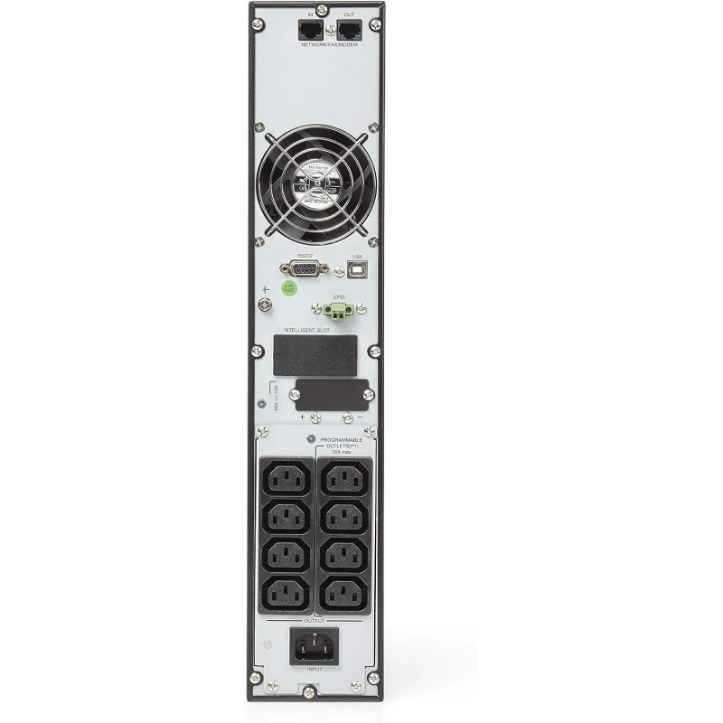 Convertible torre/rack gracias a los complementos incluidos (asas para rack, pedestal para torre), con el display orientable. LCD intuitivo para manejo y configuración, con avisadores ópticos y acústicos. Fácil segmentación de las tomas de salida entre cargas críticas / no críticas.