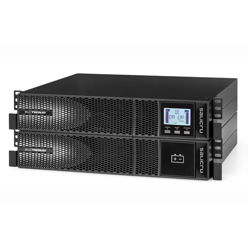 Los modelos de la serie SLC TWIN RT2 de Salicru son Sistemas de Alimentación Ininterrumpida (SAI/UPS) con las máximas prestaciones de protección eléctrica para entornos críticos de servidores. El formato dual torre/rack les permite la adaptabilidad física a cualquier emplazamiento que junto a la regleta PDU incorporada facilita al máximo la conexión de las cargas a proteger. Asimismo, el factor de potencia de salida unitiario (VA=W) aumenta la densidad de potencia entregada y reduce el espacio necesario para la instalación del SAI/UPS. La pantalla LCD es orientable según el formato de montaje escogido para una manejo más fácil. En cuanto a las comunicaciones de serie, cuentan con interfaces USB, RS-232 y relés, así como con un slot inteligente para alojar, opcionalmente, una tarjeta SNMP, MODBUS o contactos libres de potencial; tambien estan disponibles paquetes de software para la monitorizacion y gestion, local o virtual, de los equipos protegidos. Para las aplicaciones que requieran de back-up de respaldo extendido, se pueden instalar módulos adicionales de baterías y/o soluciones con cargador extra. Y para aplicaciones que requieran protección redundante o bien aumenten de necesidad de potencia, existe la opción de conexión de hasta 3 equipos en paralelo.