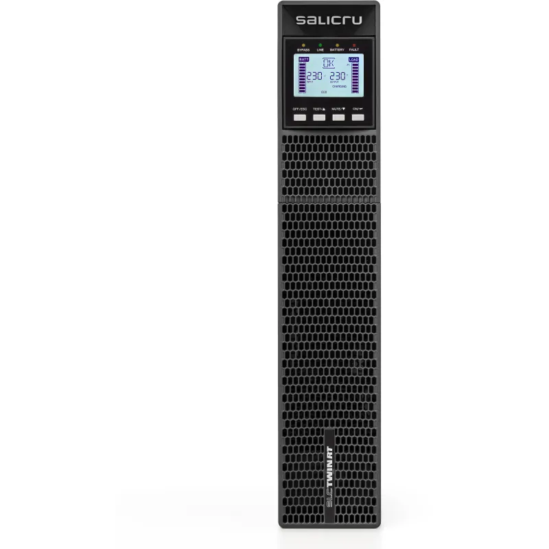 Los modelos de la serie SLC TWIN RT2 de Salicru son Sistemas de Alimentación Ininterrumpida (SAI/UPS) con las máximas prestaciones de protección eléctrica para entornos críticos de servidores. El formato dual torre/rack les permite la adaptabilidad física a cualquier emplazamiento que junto a la regleta PDU incorporada facilita al máximo la conexión de las cargas a proteger. Asimismo, el factor de potencia de salida unitiario (VA=W) aumenta la densidad de potencia entregada y reduce el espacio necesario para la instalación del SAI/UPS. La pantalla LCD es orientable según el formato de montaje escogido para una manejo más fácil. En cuanto a las comunicaciones de serie, cuentan con interfaces USB, RS-232 y relés, así como con un slot inteligente para alojar, opcionalmente, una tarjeta SNMP, MODBUS o contactos libres de potencial; tambien estan disponibles paquetes de software para la monitorizacion y gestion, local o virtual, de los equipos protegidos. Para las aplicaciones que requieran de back-up de respaldo extendido, se pueden instalar módulos adicionales de baterías y/o soluciones con cargador extra. Y para aplicaciones que requieran protección redundante o bien aumenten de necesidad de potencia, existe la opción de conexión de hasta 3 equipos en paralelo.