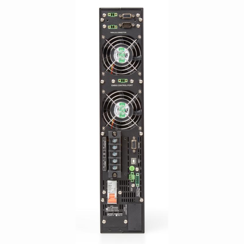 Equipada con una batería de tecnología Plomo-Calcio (Pb-Ca) y un tiempo de recarga de solo 9 horas, este UPS también permite el arranque en frío para garantizar la continuidad del servicio en cualquier situación. Su diseño versátil permite el montaje en rack o torre, ocupando solo 4U de espacio en el rack, y está fabricado en un elegante color negro con un visualizador LCD y indicadores LED para una fácil monitorización.