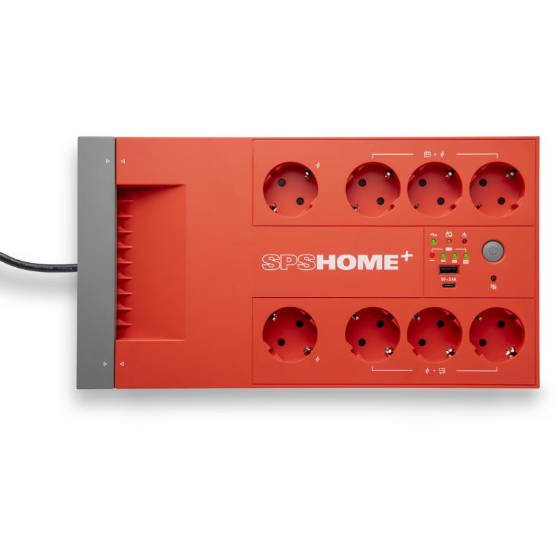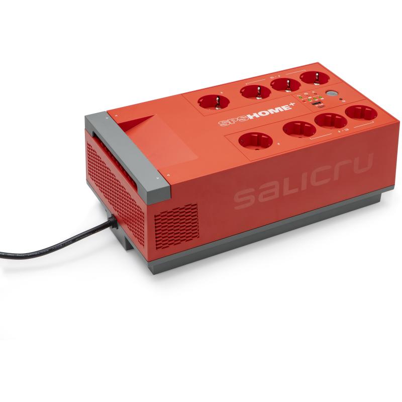 SAI Salicru SPS 850 HOME+ UPS compacto de 0,65 kVA con AVR 8 salidas AC 2 USB batería Pb-Ca y alarmas audibles. Protección fiable para tus dispositivos, color Rojo