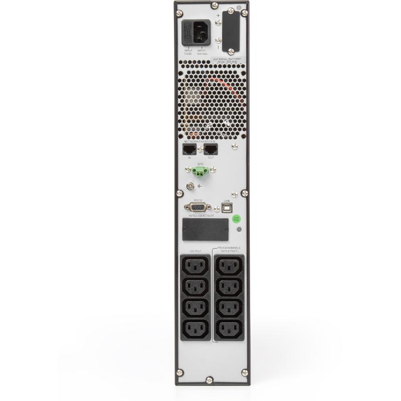 Con 8 salidas AC tipo C13 y una variedad de puertos, incluyendo USB 2.0, RS-232, y Ethernet LAN (RJ-45), este UPS ofrece una conectividad excepcional. Su diseño permite un montaje en rack/torre con una capacidad de 2U, y cuenta con un sistema de enfriamiento activo con ventilador integrado y control de velocidad.