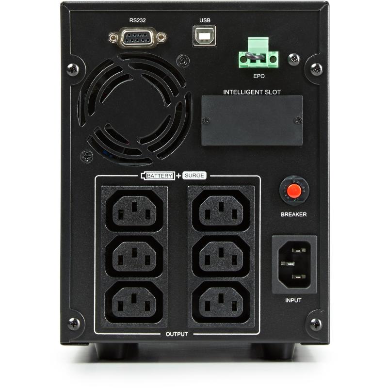 Equipado con 6 salidas AC tipo C13 y una interfaz en serie RS-232, este UPS garantiza una excelente conectividad. Además, cuenta con un puerto USB 2.0 y la capacidad de realizar un arranque en frío, lo que lo hace versátil y confiable en situaciones de emergencia.