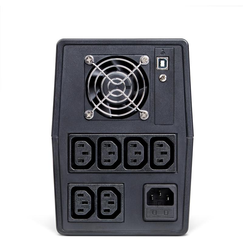 Con 6 salidas AC y un puerto USB Tipo B, este UPS ofrece amplias opciones de conectividad. La tecnología de batería de Plomo-Calcio (Pb-Ca) proporciona una vida útil máxima de 5 años y permite un tiempo de recarga de solo 6 horas, con la funcionalidad de arranque en frío para situaciones de emergencia.