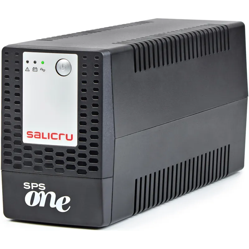 Sistema de Alimentación Ininterrumpida (SAI/UPS) de formato minitorre con topología Line-interactive, la serie SPS ONE de Salicru proporciona back-up de batería (con salida de ondulador pseudosenoidal) y protección contra sobrecargas. Durante los cortes de tensión, los equipos SPS ONE entregan respaldo de batería para realizar un apagado correcto del sistema informático y proteger contra la pérdida de datos y daños a la electrónica. Funcionamiento mediante regulación automática de tensión (AVR) para corregir pequeñas fluctuaciones de tensión sin tener que utilizar la batería, alargando la vida útil de ésta. La función AVR es esencial en áreas donde las fluctuaciones de tensión ocurren con frecuencia.