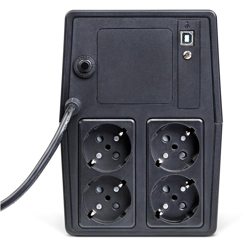 CONECTA TUS DISPOSITIVOS CON FACILIDAD Y SEGURIDAD: Función AVR ajusta automáticamente el voltaje de salida entre 220 y 240 V, según las condiciones de la red. Así, evitas que tus dispositivos se dañen por un voltaje demasiado alto o bajo. Además, nuestro UPS tiene cuatro salidas AC para conectar diferentes dispositivos, y un puerto USB tipo B para comunicarse con un ordenador. También tiene un cable de alimentación desmontable, lo que facilita su instalación y transporte.
