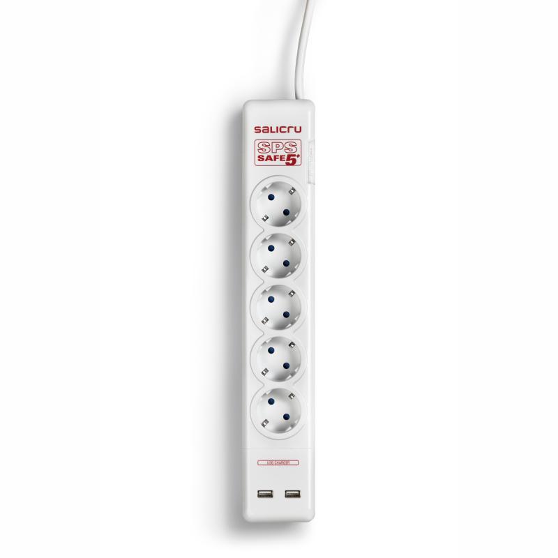 Salicru SPS SAFE 5+ Regleta con 5 Tomas Schuko y 2 USB con Interruptor