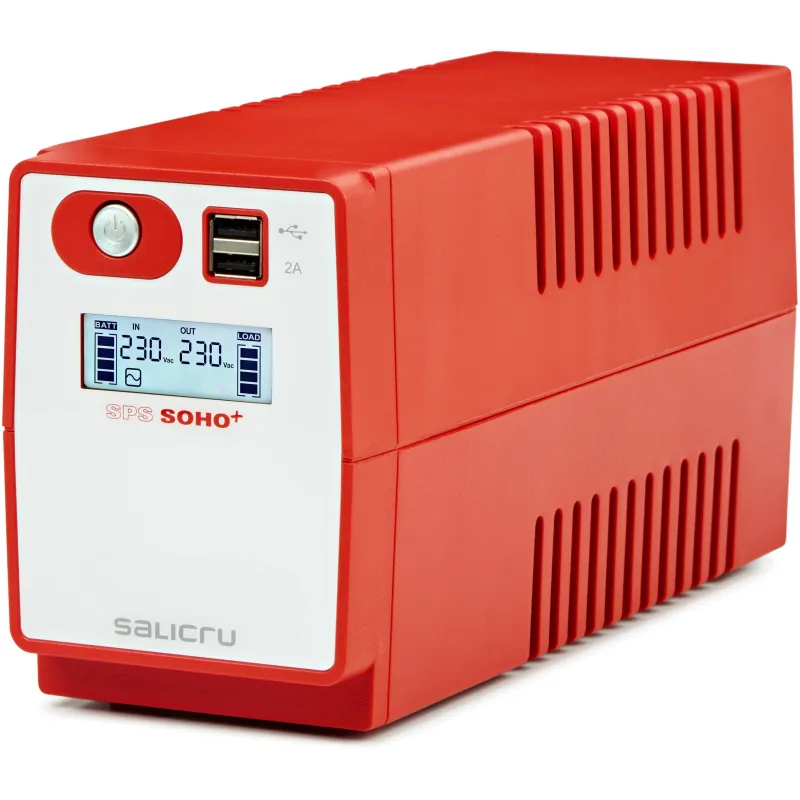 SPS SOHO+: ÓPTIMA PROTECCIÓN ELÉCTRICA PARA ENTORNOS Y SISTEMAS OFIMÁTICOS: Los Sistemas de Alimentación Ininterrumpida (SAI/UPS) de la serie SPS SOHO+ de Salicru incorpora, como prestaciones más destacables, la tecnología Line-interactive, la compatibilidad con cargas APFC (Active Power Factor Correction) y un doble cargador USB en la parte frontal; todo ello en un rango de potencias que cubre de 500 a 2.200 VA y en versiones con tomas de salida tipo schuko o IEC.