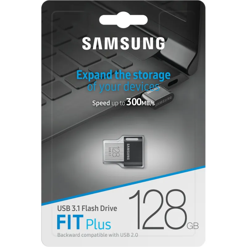 Pendrive Samsung Fit Plus Capacidad de Almacenamiento 128GB / USB 3.1 / Velocidad de Lectura 300MB/s / Velocidad de escritura 30MB/s / Conexion USB A