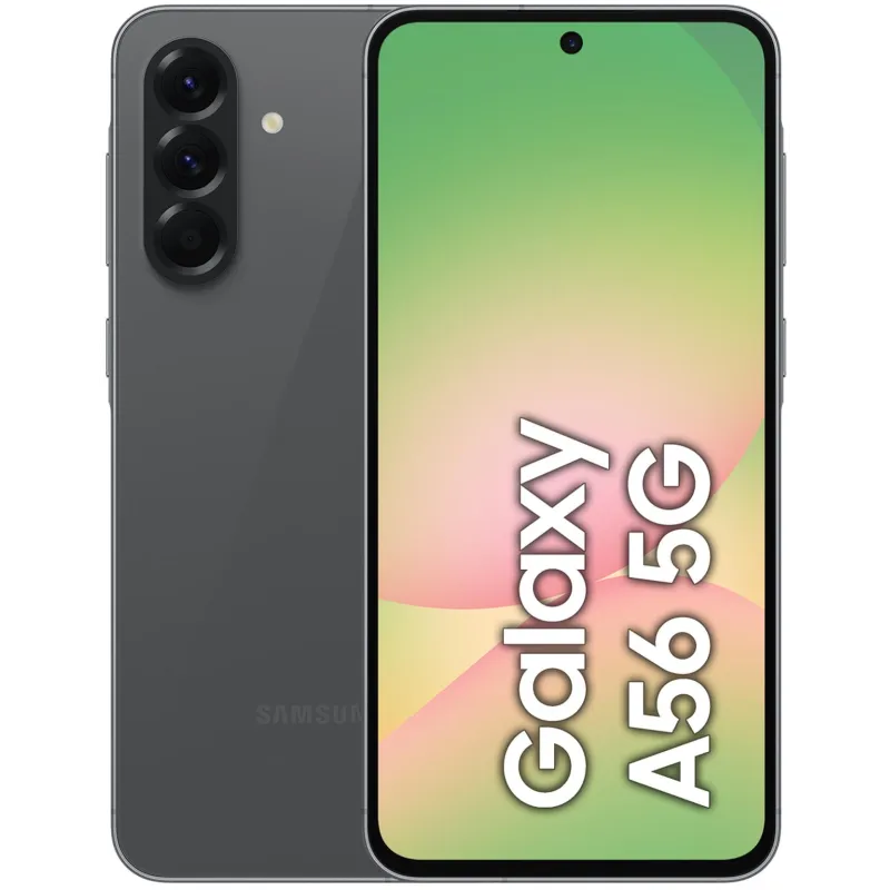 Móvil: Samsung Galaxy A56 5G 256 GB Awesome Graphite. Pantalla 6,7 Super AMOLED 120 Hz, IP67 y batería 5.000 mAh para ver vídeo y usar apps.