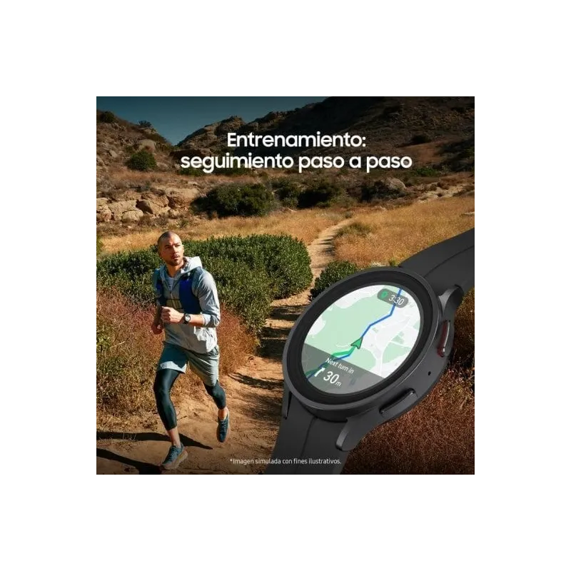 RESISTENTE AL AGUA Y ENTORNOS HOSTILES: Galaxy Watch5 Pro es resistente para todo tipo de entornos, con una resistencia al agua de 5 atmósferas de presión y con certificación MIL-STD-810G, es idóneo para nadar y realizar ejercicio o actividades al aire libre.