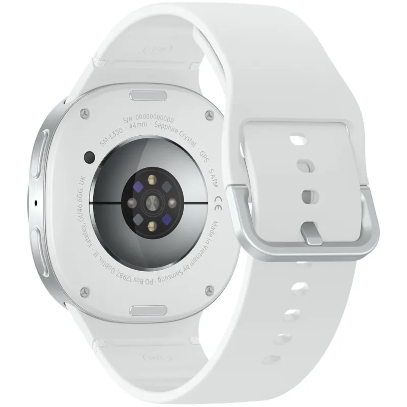 El Smartwatch Samsung Galaxy Watch8 44mm Plateado destaca por su diseño robusto y sofisticado. Construido con un cuerpo de aluminio y parte trasera de cristal de zafiro, ofrece durabilidad sin comprometer la estética. Su tamaño de 44 mm y peso de solo 34 g lo hacen cómodo para llevar durante todo el día. Además, cuenta con resistencia al agua de 5 ATM, certificación IP68 y estándar militar MIL-STD-810H, lo que garantiza su funcionamiento en condiciones exigentes. Ya sea en actividades deportivas o entornos laborales, este smartwatch se adapta a cualquier situación. Su correa blanca con hebilla metálica añade un toque moderno y funcional, haciendo del Galaxy Watch8 una elección segura para quienes valoran tanto el rendimiento como el estilo.