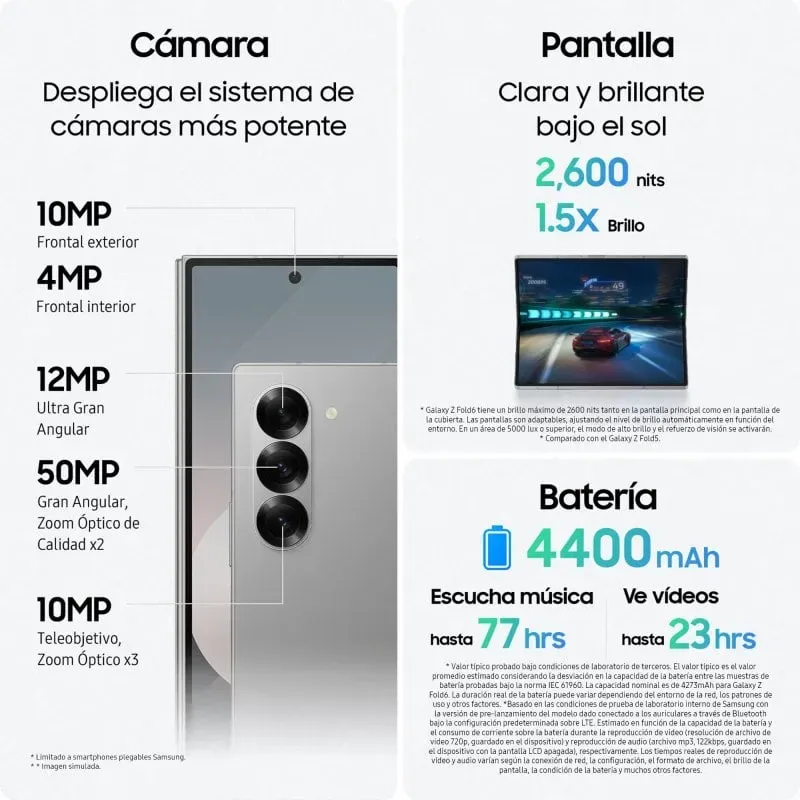 La pantalla interior es de 7,6" Dynamic AMOLED 2X y se siente pensada para multitarea y lectura prolongada. La pantalla exterior de 6,3" sirve para lo cotidiano: mensajes, llamadas y notificaciones, sin tener que abrir el terminal en cada consulta.
