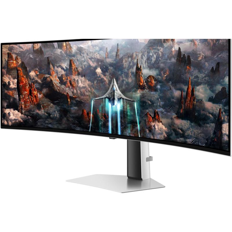 Samsung G93SC. Diagonal de la pantalla: 124,5 cm (49"), Resolución de la pantalla: 5120 x 1440 Pixeles, Tipo HD: Dual QHD, Tecnología de visualización: OLED, Tiempo de respuesta: 0,03 ms, Relación de aspecto nativa: 32:9, Ángulo de visión, horizontal: 178°, Ángulo de visión, vertical: 178°. Altavoces incorporados. Conector USB incorporado, Versión de conector USB: 3.2 Gen 1 (3.1 Gen 1). montaje VESA, Ajustes de altura. Color del producto: Plata