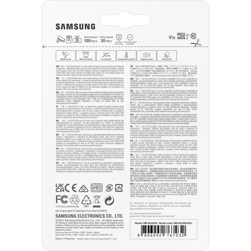 Gracias a su capacidad de 32 GB, esta Tarjeta de Memoria Samsung Pro Endurance MB-MJ32KA/EU ofrece un amplio espacio para almacenar fotos, vídeos, música y documentos importantes. Su velocidad de escritura de 30 MB/s permite guardar archivos con rapidez, lo cual es esencial para tareas que requieren agilidad y eficiencia. Además, su construcción robusta permite hasta 10000 ciclos por sector lógico, lo que garantiza una larga vida útil incluso con un uso intensivo. El diseño compacto, con un peso de solo 0,25 g, facilita su transporte e instalación. Certificada por organismos internacionales como CE, FCC y VCCI, esta tarjeta cumple con los estándares de calidad y seguridad más exigentes. En definitiva, es una opción completa y equilibrada para quienes necesitan una solución de almacenamiento fiable y de alto rendimiento.