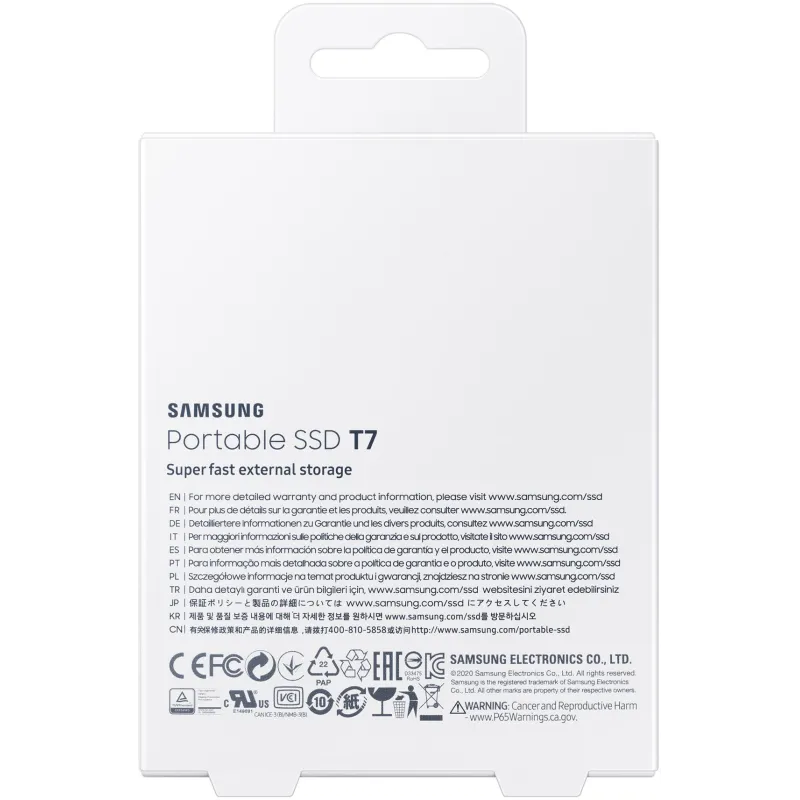 Fabricada en Corea del Sur, cumple con múltiples certificaciones como CE, BSMI, KC, VCCI, C-tick, FCC, IC, UL, TUV, CB y EAC, y además cuenta con certificaciones de sostenibilidad RoHS. Sus dimensiones compactas de 85 mm de ancho, 8 mm de profundidad y 57 mm de altura, junto a un peso ligero de 58 g, la hacen extremadamente portátil.
