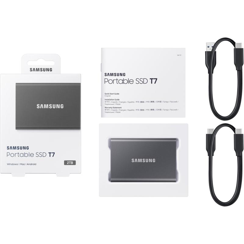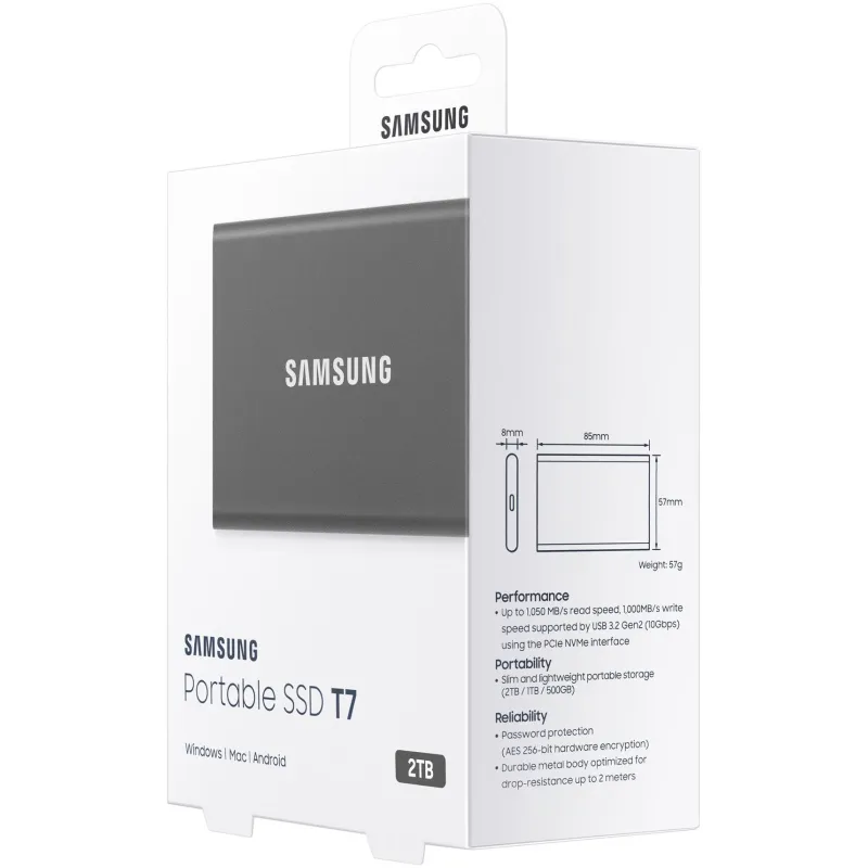 Samsung T7 Touch SSD 2TB Disco USB Externo USB-C 3.2 Gris con velocidad de lectura de 1050 MB/s y velocidad de escritura de 1000 MB/s