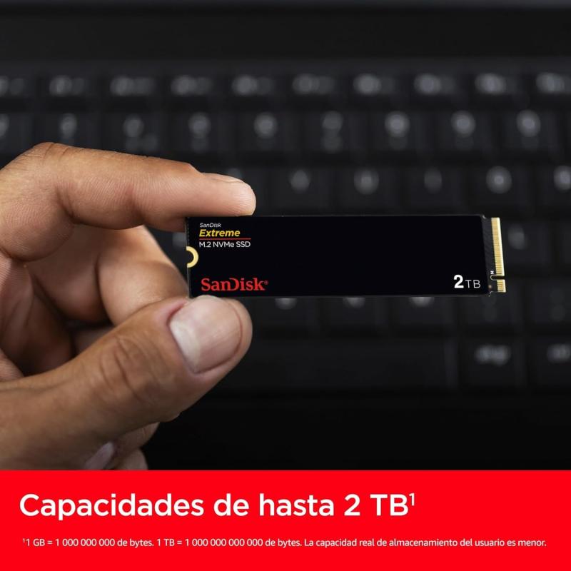 Disco Duro SSD SanDisk Extreme 2TB interfaz PCI Express 4.0 velocidad de lectura de 5150 MB/s y escritura de 4850 MB/s
