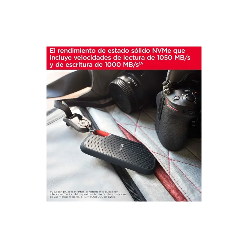 Disco Duro SSD SanDisk SDSSDE61-2T00-G25B con velocidad de lectura 1050 MB/s, escritura 1000 MB/s, conector USB Tipo C