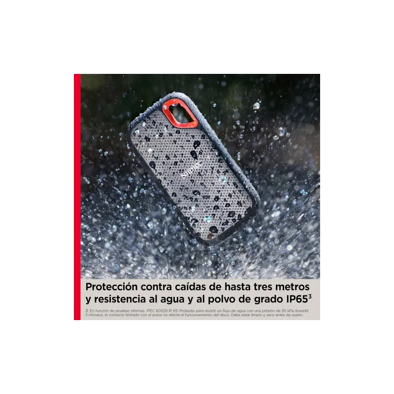 VELOCIDAD DE LECTURA 1050 MB/S PARA TRANSFERENCIAS ULTRARRÁPIDAS: Gracias a su velocidad de lectura 1050 MB/s, el Disco Duro SSD SanDisk SDSSDE61-2T00-G25B permite realizar transferencias de archivos pesados de forma casi instantánea. Ya sea que trabajes con vídeos en 4K, fotografías RAW o grandes bases de datos, este dispositivo responde con agilidad. Su rendimiento constante lo convierte en una herramienta imprescindible para profesionales creativos y técnicos. Además, su compatibilidad con USB Tipo C facilita su uso con los equipos más modernos. La certificación IP65 añade tranquilidad, ya que protege el SSD de condiciones adversas. No solo es rápido, también es seguro y fiable, lo que lo convierte en una inversión inteligente para quienes valoran la eficiencia y la protección de sus datos.