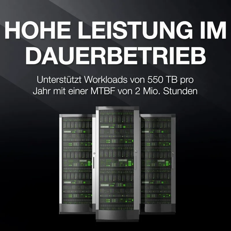 Diseñado para operaciones continuas, este disco duro soporta funcionamiento 24/7 y cuenta con sensores de vibración giratoria (RV) para mayor estabilidad y fiabilidad. Su tasa de error no corregible es menor a 1 por cada 10^15 bits leídos, lo que garantiza una alta fiabilidad en la lectura de datos. Con un tiempo medio entre fallos de 2,000,000 horas, este disco duro es una opción duradera y confiable para entornos exigentes.