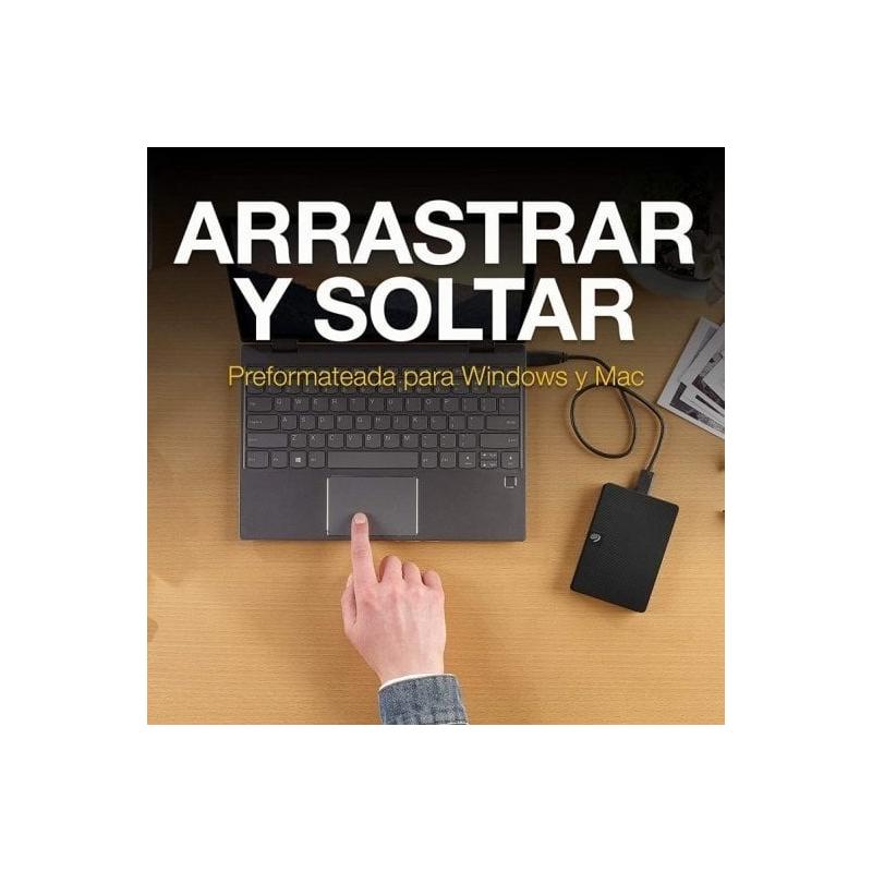 SEAGATE EXPANSION, ALMACENAMIENTO ADICIONAL PARA TU PC: El disco portátil Seagate ® Expansion es compacto y perfecto para llevar contigo. Añade instantáneamente más espacio de almacenamiento a tu PC o Mac y lleva archivos grandes contigo cuando viajes. La configuración es simple y directa; simplemente conecta un solo cable USB y estarás listo para comenzar. El disco se alimenta del cable USB, por lo que no hay necesidad de una fuente de alimentación externa. Además, es reconocido automáticamente por el sistema operativo Windows ® o Mac, por lo que no hay software que instalar ni nada que configurar. Guardar archivos es fácil: simplemente arrastra y suelta. Aprovecha las rápidas velocidades de transferencia de datos con la interfaz USB 3.0 conectándote a un puerto USB 3.0. Además, Seagate Expansion viene con los Servicios de Recuperación de Datos Rescue 1 para mayor tranquilidad.