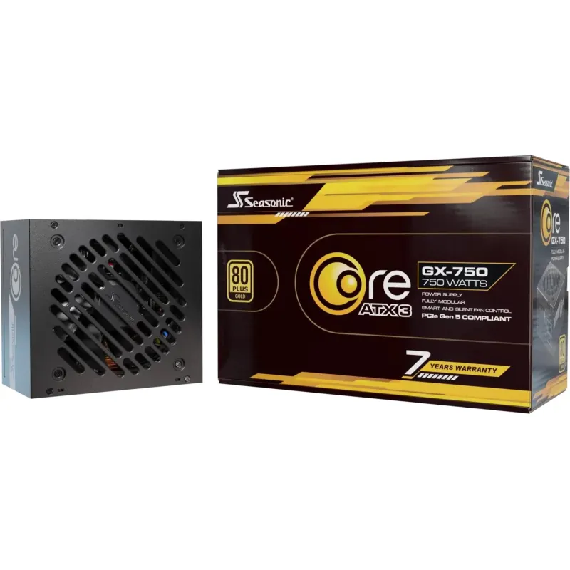 LA ACTUALIZADA SERIE SEASONIC CORE GX ATX3: La serie actualizada Seasonic CORE GX ATX3 cumple con los últimos estándares ATX 3.1 y PCIe 5.1 e incluye cuatro rangos de salida de 1000 W a 650 W en colores negro y blanco. Atendiendo a un amplio espectro de entusiastas de PC y constructores de sistemas, estas fuentes de alimentación proporcionan un equilibrio fino entre costo y rendimiento. La línea Core GX de Seasonic, certificada por 80 PLUS® Gold, es un diseño completamente modular equipado con cables negros con un patrón trenzado. Estas fuentes de alimentación son sólidas en rendimiento para una amplia gama de aplicaciones, donde un ventilador de 120 mm con rodamiento dinámico hidráulico se combina con el Control de Ventilador Inteligente y Silencioso de Seasonic para asegurar el rendimiento óptimo de enfriamiento al nivel de ruido más bajo posible. Estas fuentes de alimentación de calidad están respaldadas por la garantía mundial del fabricante de Sea Sonic de 7 años.